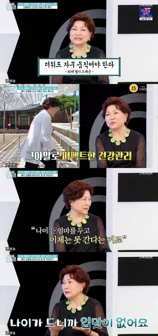16일 방송된 TV조선 ‘퍼펙트 라이프’에서는 61년 차 명품 배우 김용림이 출연해 일상을 공개했다.