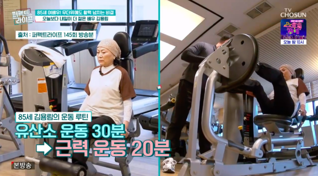 이날 김용림은 운동이 일상 생활이라며 "최소 2-3회 간다. 헬스장에 가서 30분 런닝머신 하고 웨이트 20분 하고 스트레칭 10분 하고 그리고 샤워한다"라고 밝혀 눈길을 끌었다.