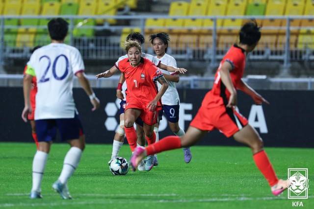 후반 4분에는 장슬기가 강력한 오른발 슈팅을 날려봤지만 골문 왼쪽을 벗어났다. 대한민국은 후반 11분 한일전 동점골의 주인공 정다빈을 빼고 김민지를 투입했다. 김민지는 투입 2분 만에 상대 페널티 박스 중앙에서 김혜리의 크로스를 헤더로 연결했지만 높이 떴다.