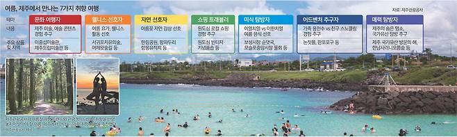이번 여름은 제주에서 뻔한 관광 대신 나와 우리 가족만의 테마가 있는 색다른 여행을 즐겨보는 것은 어떨까. 제주도와 제주관광공사가 2025년 놓치지 말아야 할 테마 여행 ‘나만의 방식으로 즐기는, 제주의 여름’을 공개했다. 16일 제주관광공사에 따르면 올여름 7가지 제주 취향 여행은 △문화여행자 △웰니스 선호자 △자연 선호자 △쇼핑 트레블러 △미식 탐방자 △어드벤처 추구자 △매력 탐방자이다. 공사 관계자는 “여름철에만 즐길 수 있는 취향 기반 여행 콘텐츠를 개발하고 전통시장 미식탐방과 원도심 쇼핑 등 로컬 체험도 소개함으로써 제주를 다양하게 경험할 수 있도록 했다”고 말했다.