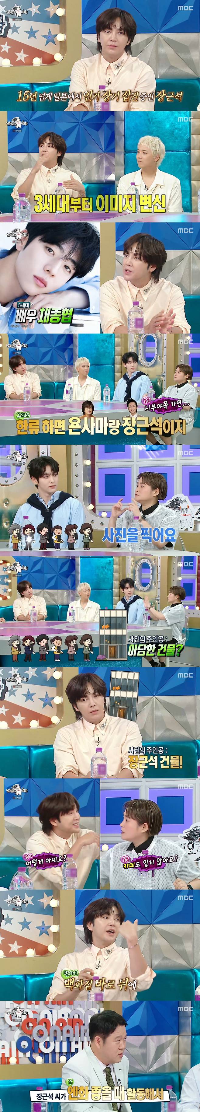 이날 15년 넘게 일본에서 인기 장기집권 중인 장근석은 일본 인기 계보에 대해 "1세대 조용필 선생님, 김연자 선생님 이후 한류 2세대 배용준 선배님, 이병헌 선배님, 3세대부터 우리 세대로 바뀌면서 젊어졌다"고 말했다.