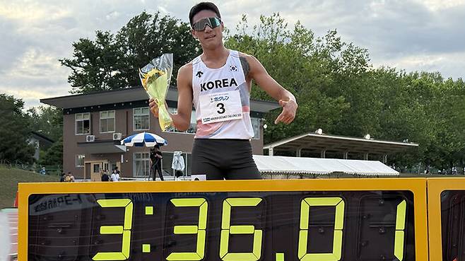 그는 지난달 14일 홋카이도 시베츠에서 열린 호크렌 디스턴스챌린지 2차 대회에서 3분 38초 55에 결승선을 통과, 1993년 12월 필리핀 마닐라 아시아육상선수권에서 김순형(당시 경북대)이 작성한 3분 38초 60을 0.05초 당긴 한국 신기록을 세운 바 있습니다.