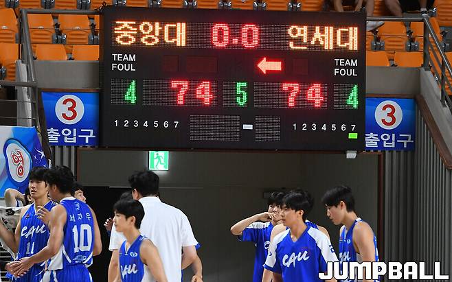 4쿼터 1분 10초를 남기고 이유진의 3점슛으로 연세대는 64-62로 앞섰다. 하지만, 고찬유와 김휴범에게 연속 5실점하며 67-64로 역전을 당했다. 남은 시간은 26.3초.