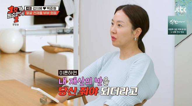 김지혜, "♥박준형과 이혼 못 하는 이유? 내 재산 반 줘야 돼" ('1호가2') [종합]