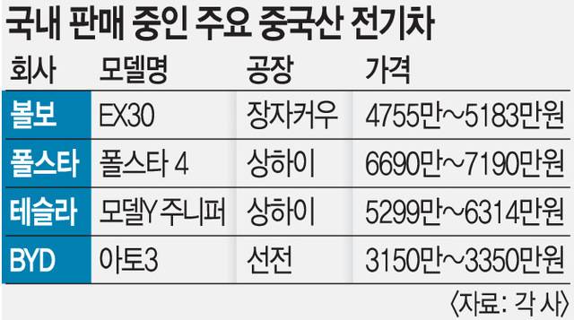 볼보의 소형 전기 스포츠유틸리티차(SUV) EX30은 중국 허베이성 장자커우 공장에서 만들어진다. 볼보는 2010년 중국 지리자동차에 인수됐다. 볼보의 전기차 브랜드 폴스타의 ‘폴스타4’ 역시 상하이 공장에서 생산돼 전 세계로 수출되고 있다. 수입차 관계자는 “과거처럼 ‘중국산이라서’ 꺼리는 분위기는 찾아보기 어렵다”고 말했다.