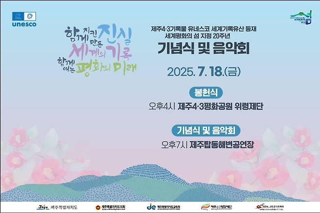 이어 오후 7시부터 제주탑동해변공연장에서는 '세계가 기억하는 제주4·3, 기억으로 잇는 평화의 울림'을 주제로 공식 등재기념식과 평화음악회가 열린다.