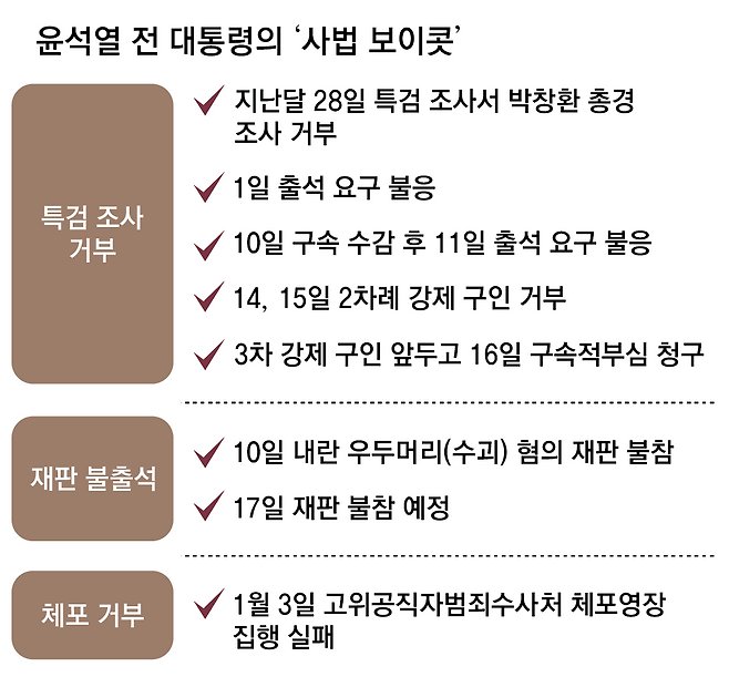 尹, 특검 조사-재판 보이콧… 본인이 낸 구속적부심엔 내일 출석