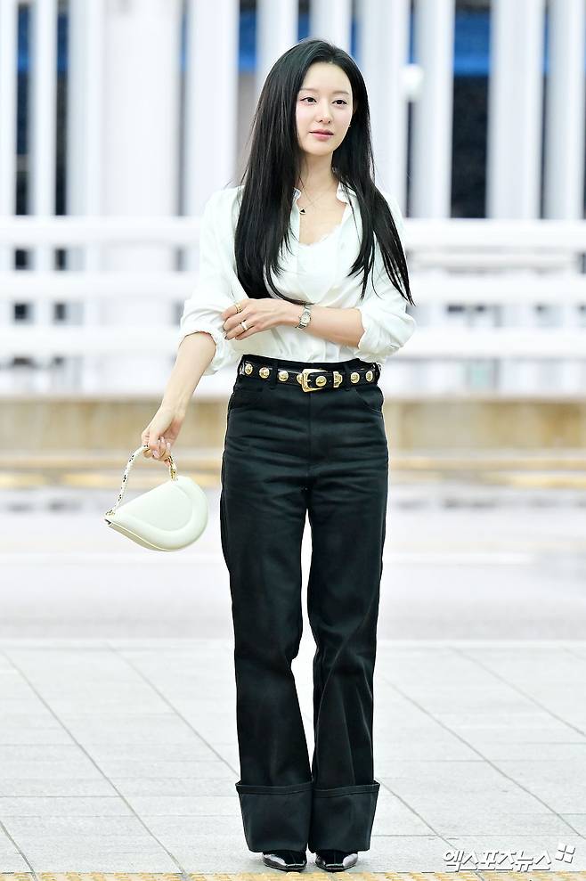 공항을 런웨이로 만들 듯 자연스럽게 포즈를 취한 김지원은 흰 셔츠 하나만으로도 완벽한 비율과 우아한 아우라를 뽐내 눈길을 끌었다.
