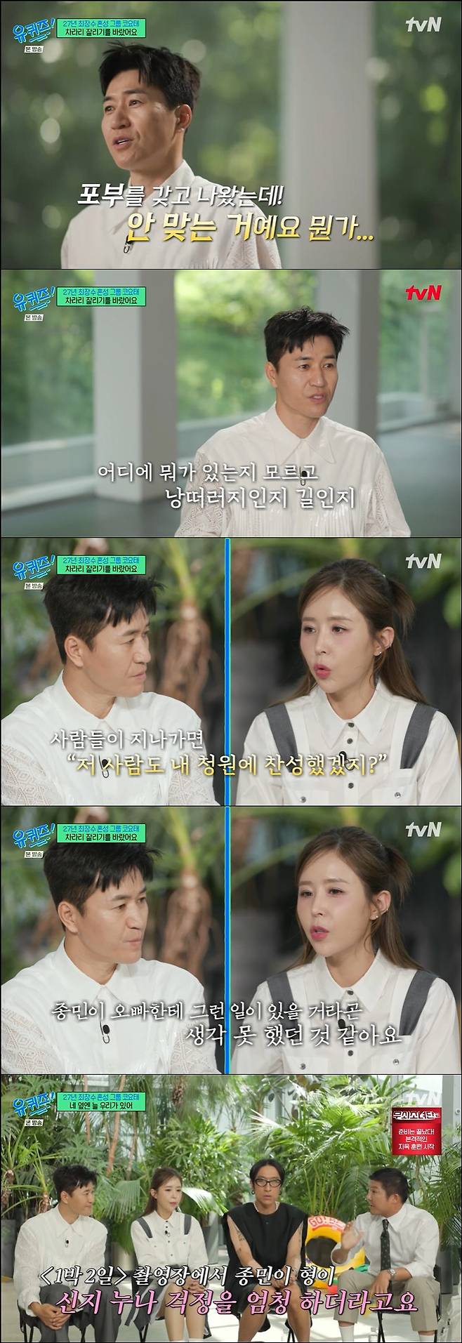 [스포츠조선닷컴 이우주 기자] '유퀴즈' 김종민이 신지와 문원의 결혼을 앞두고 심란한 심경을 드러냈다.