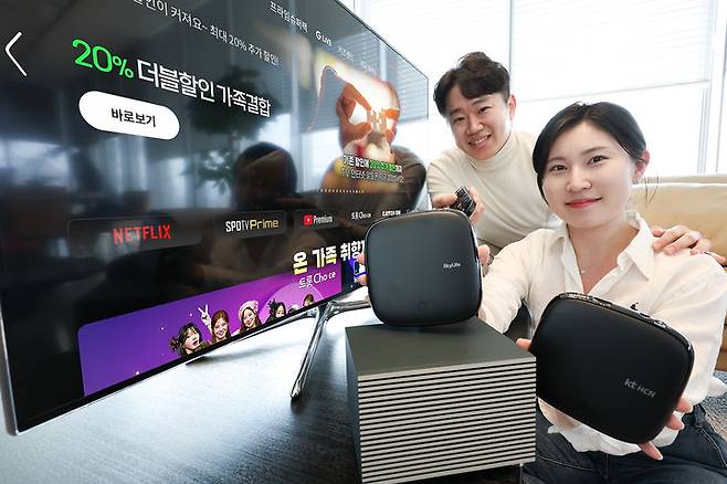 [서울=뉴시스]박은비 기자 = KT 위성방송 서비스 계열사인 kt스카이라이프가 IPTV(인터넷방송) 서비스 상품을 내놨다. KT 케이블TV 계열사인 kt HCN도 같은 상품을 출시했다. 각각 위성방송과 케이블TV 방송 서비스를 전담해왔던 KT 미디어 계열사들이 IPTV 서비스를 잇따라 출시한 배경에 귀추가 주목된다. IPTV는 KT 본사의 주력 사업 중 하나다.