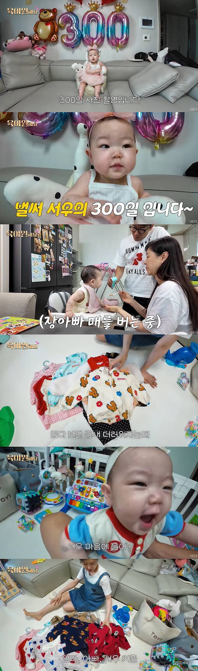 장수원과 아내는 예쁜 옷을 입은 딸을 사랑스러운 눈빛으로 바라보며 "300일 축하한다"고 기뻐했다.