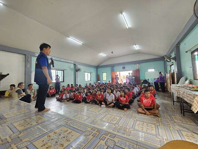 15일 오전 신 선교사와 이 지부장, 진량제일교회·은혜로교회 등 경북 경산의 교회 두 곳이 함께한 선교 프로젝트 회복의 단기 선교팀이 방문한 체디코 난민학교도 그중 하나다. 유치원부터 초등학생까지 미얀마 아이들 170여명이 작은 교실에 모여 수업을 들었다.