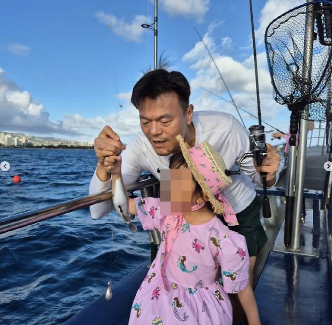 공개된 사진 속에는 하와이로 떠난 박진영 가족의 모습이 담겼다. 하와이에서 낚시를 즐기며 휴가를 즐긴 박진영. 특히 박진영은 똑닮은 딸에게도 낚시를 알려주며 행복한 시간을 보냈다.