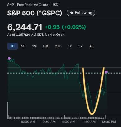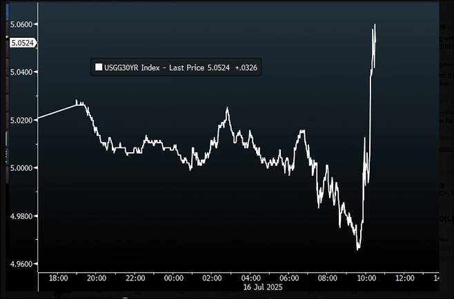 오전 11시 16분께 블룸버그는 백악관 고위 소식통을 인용해 "트럼프 대통령이 곧 파월 의장을 해임할 것 같다"라고 속보로 보도했습니다. 즉시 시장은 요동쳤습니다. S&P500 지수는 0.6%까지 떨어졌고, 국채 30년물 수익률은 한때 10bp 뛰면서 다시 5% 선을 넘었습니다. 달러(ICE 달러인덱스)는 최대 1%까지 하락했고요. 변동성지수(VIX)는 17선에 머물다 19.48까지 뛰었습니다.