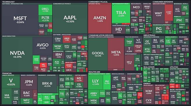 헬스케어가 가장 큰 1.22% 올랐는데요. 존슨앤드존슨이 2분기 호실적을 기록하고 연간 실적 가이던스를 상향 조정하면서 주가가 6% 넘게 뛰었고요. 일라이릴리도 2.34% 오르는 등 헬스케어 주식들이 동반 상승했습니다.