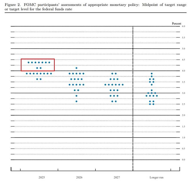 ② 의장 교체에 성공한다 해도 Fed가 바로 금리를 낮추는 게 아닙니다. FOMC는 12명으로 짜여 있고요. 다수결로 통화정책을 결정하는데요. 6월 연방공개시장위원회(FOMC)에서 내놓은 점도표를 보면 7명이 올해 인하하지 않겠다고 찍었고요. 2명은 1회 인하만 예상했습니다. 트럼프 대통령이 요구하는 3%포인트(300bp) 인하가 이뤄지려면 상당수 이사를 교체해야 하는데요. 내년까지 교체가 가능한 사람은 파월 의장과 아드리아나 쿠글러 이사(2026년 1월 임기 종료) 등 2명뿐입니다. 파월 의장은 이사 임기(2028년 1월)가 남아있어서 의장직은 떠나도 계속 FOMC에 머물 수도 있습니다.