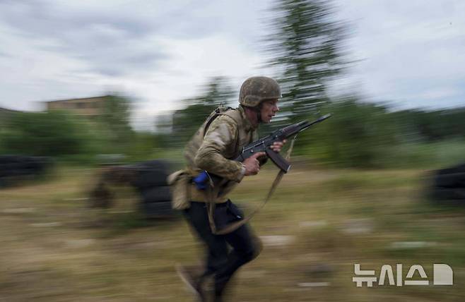 [키이우=AP/뉴시스] 16일(현지 시간) 우크라이나 키이우의 한 훈련장에서 우크라이나 제3 돌격여단 신병들이 훈련하고 있다. 2025.07.17.