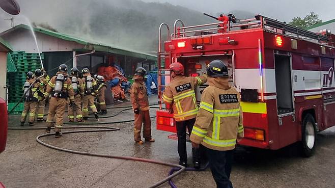 충주 중앙탑면 물류창고서 낙뢰 추정 화재