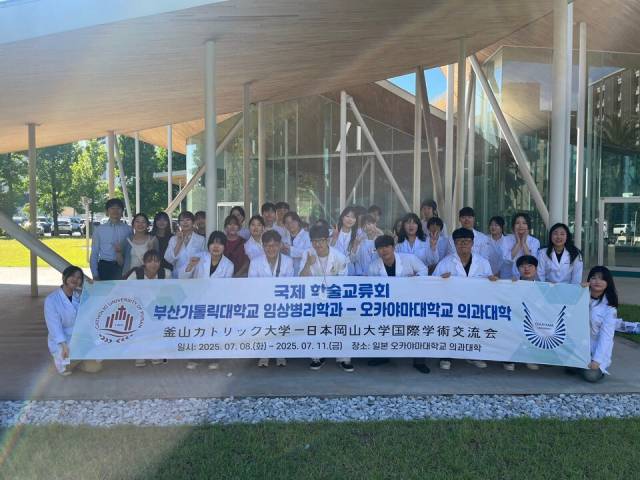 부산가톨릭대(총장 홍경완 신부) 임상병리학과(학과장 최고은 교수) 3학년 재학생 12명은 지난 8~11일 3박 4일간 일본 오카야마대학교 보건과학과에 방문, 학술발표회 참여 및 발표, 부설병원 및 실험실 견학, 카데바 해부학실습에 참여하는 하계 국제학술교류회를 진행했다.