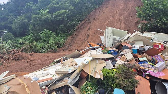 ▲ 중부지방에 폭우가 쏟아진 17일 오전 충남 청양군 대치면 일대에 산사태가 발생해 민가가 피해를 보았다.