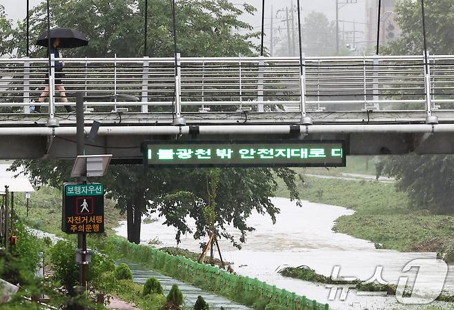 앞서 서울시는 이날 오전 7시 기준 불광천, 홍제천, 청계천, 안양천 등 하천 29곳 출입을 통제한다고 밝혔다. 2025.7.17/뉴스1