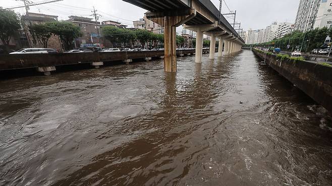 통제소에 따르면 이곳의 수위는 오늘 오전 8∼9시 80㎝ 안팎을 유지했으나, 이후 급격히 불어나 오전 9시 30분 2.5m를 넘어섰습니다.
