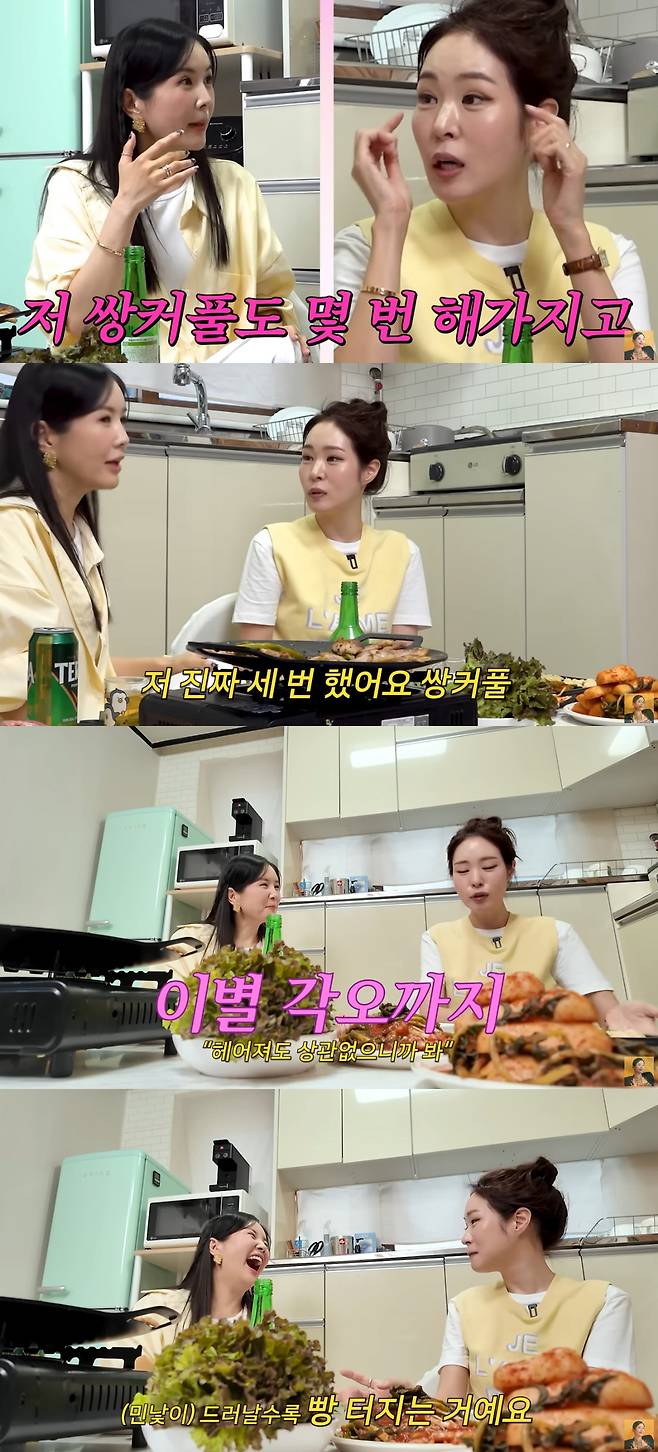 그러면서 "'내 민낯이 이상하면 결혼 안 하겠다는 건가? 헤어져도 상관없으니까 봐'라고 하면서 물티슈로 빡빡 화장을 지우는데 (민낯이) 드러날수록 빵 터지더라. 진짜 1시간 넘게 웃은 거 같다"고 말했다.