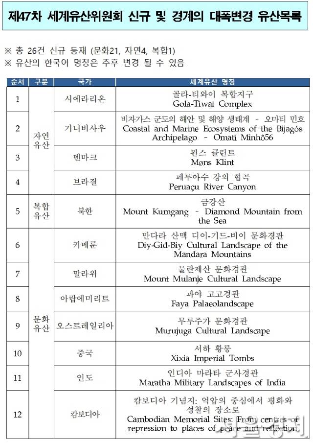 제47차 세계유산위원회 결산···세계유산 26건, 내년엔 한국, 日 군함도 불이행 등