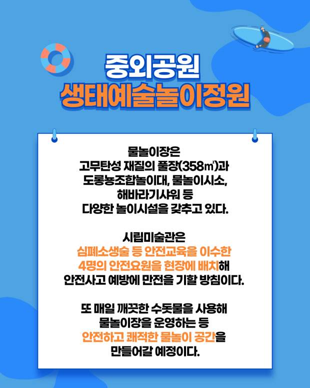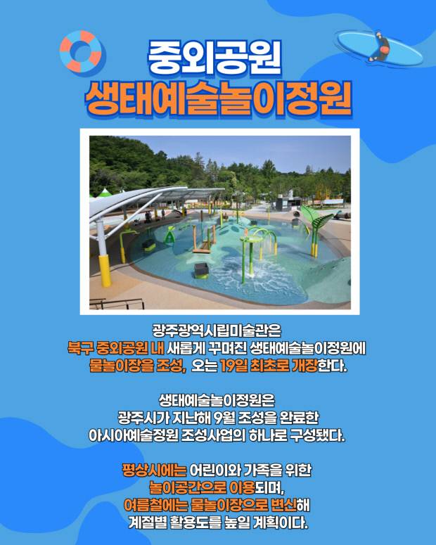 16일 광주시에 따르면 광주시립미술관은 북구 중외공원 생태예술놀이정원에 물놀이장을 조성해 19일 문을 연다.