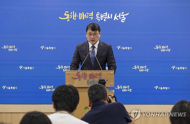 (서울=연합뉴스) 황광모 기자 = 이해선 서울시 민생노동 국장이 17일 서울 중구 서울시청에서 2025년도 하반기 서울시 소상공인 정책을 발표하고 있다. 2025.7.17