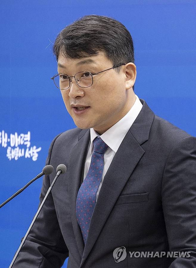 (서울=연합뉴스) 황광모 기자 = 이해선 서울시 민생노동 국장이 17일 서울 중구 서울시청에서 2025년도 하반기 서울시 소상공인 정책을 발표하고 있다. 2025.7.17
