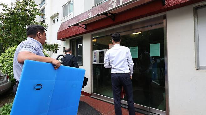 ▲ '12·3 비상계엄' 관련 내란·외환 사건을 수사하는 조은석 특별검사팀이 17일 이상민 전 행정안전부 장관의 주거지인 서울 강남구 자택을 압수수색을 하기 위해 박스를 들고 들어서고 있다.