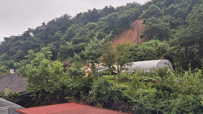 ▲ 17일 오전 충남 청양군 대치면 일대에 산사태가 발생해 민가 덮친 현장