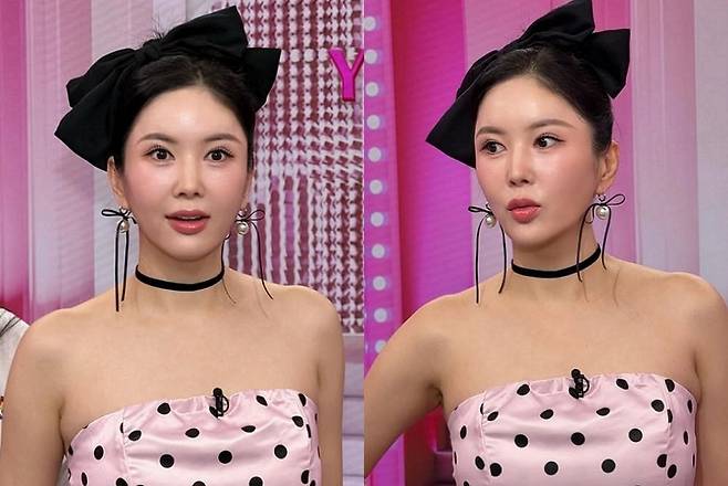 이날 장영란은 도트 무늬 미니 원피스를 착용하고, 특유의 사랑스러운 분위기를 드러냈다.
