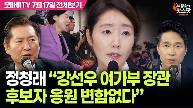 | ▲ 더불어민주당 당 대표 선거에 출마한 정청래 의원은 17일 오마이TV <박정호의 핫스팟> 인터뷰에서 강선우 여성가족부 장관 후보자 응원은 변함없다고 말했다. |