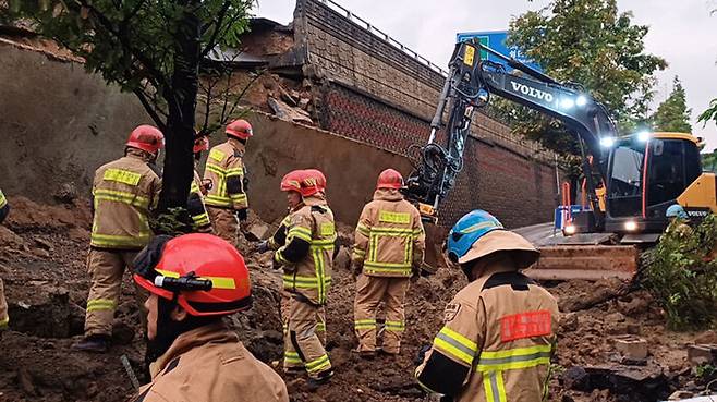 그런데 사고 직전인 오후 6∼7시 시우량이 39.5㎜를 기록하면서 갑자기 옹벽이 무너져 내리면서 이곳을 지나던 승용차를 덮친 것입니다.