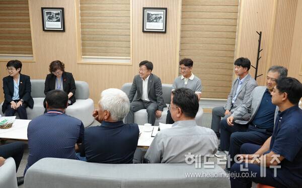 오영훈 지사는 자치행정 관련 부서 공무원들이 배석한 가운데 서귀포시민들을 잇따라 만나 지역 현안에 대한 의견을 교환했다.