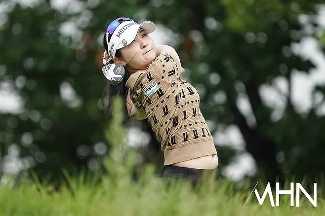 이예원이 웨지샷 연습을 하고 있다.