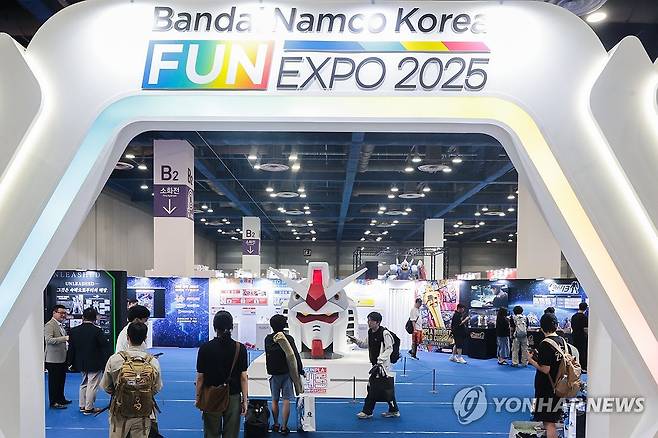 (서울=연합뉴스) 류효림 기자 = 17일 서울 강남구 삼성동 코엑스에서 열린 반다이남코코리아 펀 엑스포 2025에서 방문객들이 프라모델 및 피규어를 살펴보고 있다. 2025.7.17