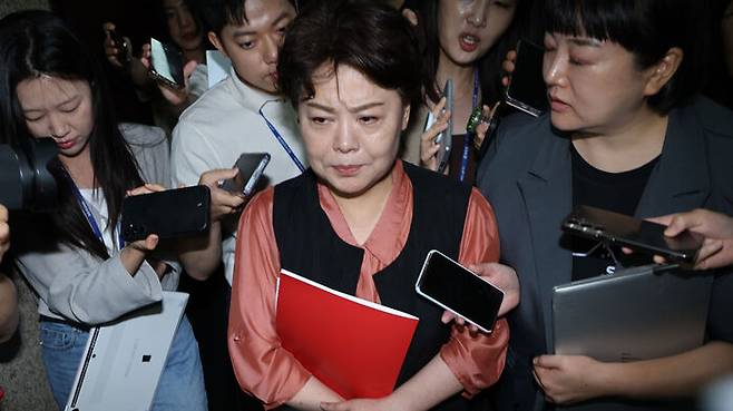 ▲ 국민의힘 윤희숙 혁신위원장이 17일 서울 여의도 국회에서 열린 비상대책위원회의에 참석한 뒤 나와 취재진의 질문을 받고 있다.