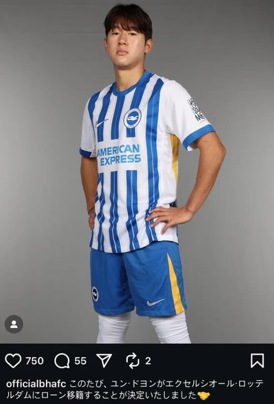 브라이턴은 공식 인스타그램 계정을 통해 윤도영의 이적 소식을 전했는데, 문제는 해당 게시물이 한국어가 아닌 일본어로 작성됐다는 점이었다.