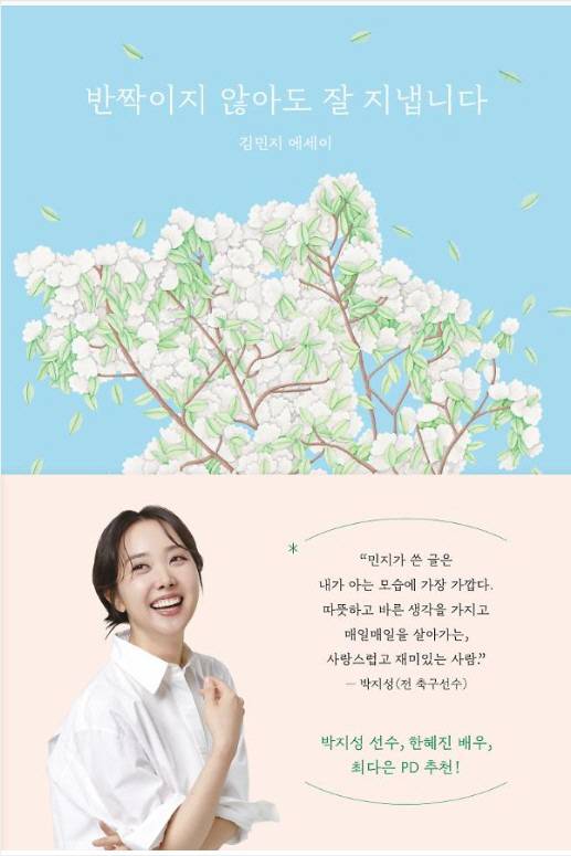 김민지 전 아나운서의 에세이집 '반짝이지 않아도 잘 지냅니다'는 방송인에서 두 아이의 엄마, 그리고 축구 스타 박지성의 아내로 살아가는 다양한 경험과 일상 속 고민 그리고 잔잔한 통찰이 담겼다.