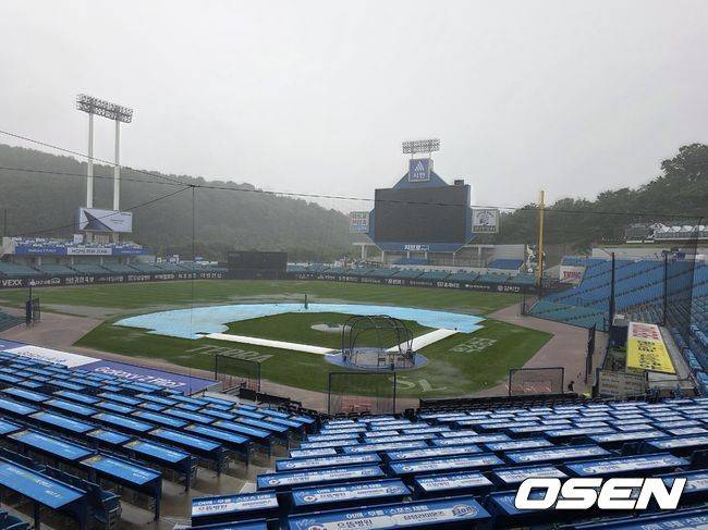 대구삼성라이온즈파크 그라운드에는 방수포가 설치됐지만 내리 비의 양의 워낙 많았다.