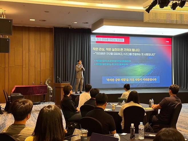 킥오프 과정은 K리그에 첫발을 내딛는 구단 및 연맹 신입사원의 인적 네트워크 형성과 실무 역량 강화를 위해 지난 2022년 개설된 교육 프로그램이다. 올해는 연맹과 구단 관계자 등 50여 명이 참석했다.