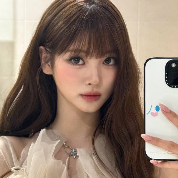 앞머리가 있든 없든, 설윤이 미모에는 축복이 끝이 없네! 평소엔 자연스럽게 내린 긴 생머리에 앞머리 없이 청초한 무드를 보여주던 설윤. 하지만 최근 앞머리를 자르며 분위기가 180도 달라졌다. 눈썹 라인에 맞춘 세미 시스루 풀뱅은 그녀의 또렷한 이목구비를 더 사랑스럽게 강조하고, 전체적으로 인형 같은 러블리함을 살려준다. 앞머리가 있을 땐 귀엽고 사랑스러운 이미지가, 없을 땐 내추럴하고 시크한 무드가 부각된다.