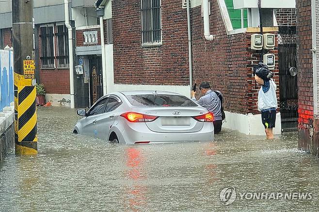 빗물에 잠긴 광주 문흥동 골목길