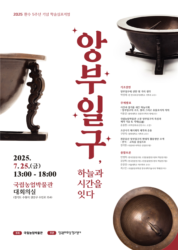 이번 심포지엄은 학계와 관련 전문가들이 참여해 앙부일구의 역사적·과학적 가치를 조명하고, 현대적 활용 가능성까지 모색하는 자리다. 국립농업박물관이 소장한 앙부일구의 학문적 의의를 규명하고 농업 및 과학사적 관점에서 그 의미를 넓힐 계획이다.