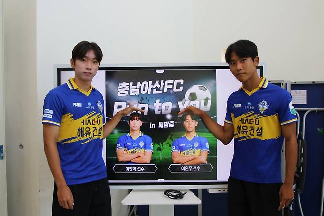 [골닷컴] 이정빈 기자 = 올해 첫 런투유 프로그램을 위해 충남아산FC 이민혁, 이연우 선수가 배방중을 찾았다.