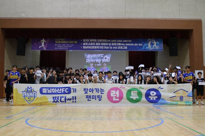 ‘런투유’는 충청남도 관내 중·고등학교를 직접 방문해 청소년들과 교감하는 구단 대표 프로그램이다. 학생들이 선수들과 가까이에서 소통하며 구단에 대한 관심을 높이고 팬층 확대를 도모하고자 기획됐다.