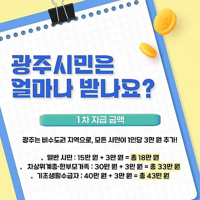 광주는 비수도권 지역으로, 모든 시민이 1인당 3만 원 추가!